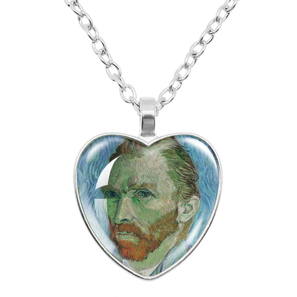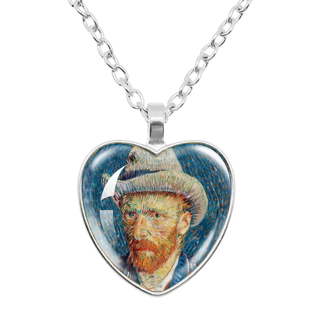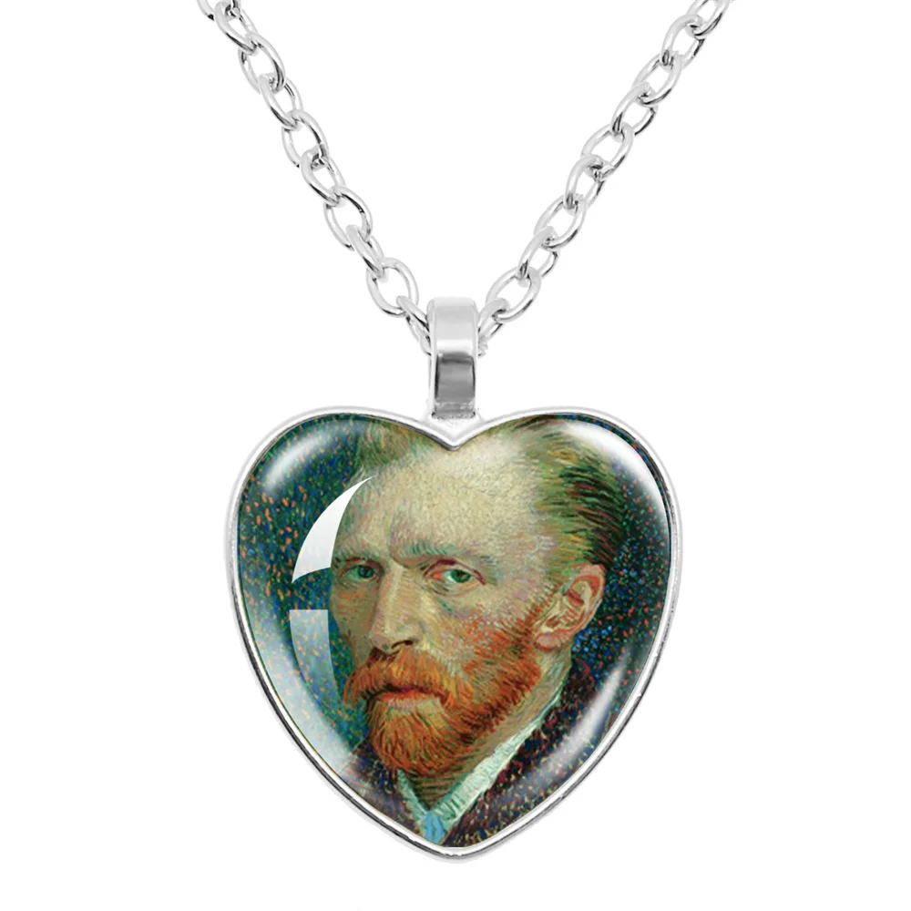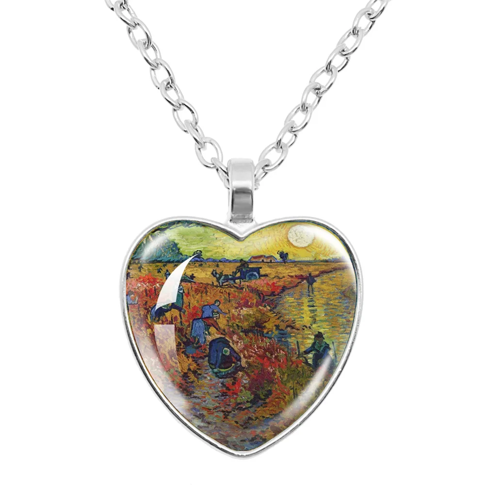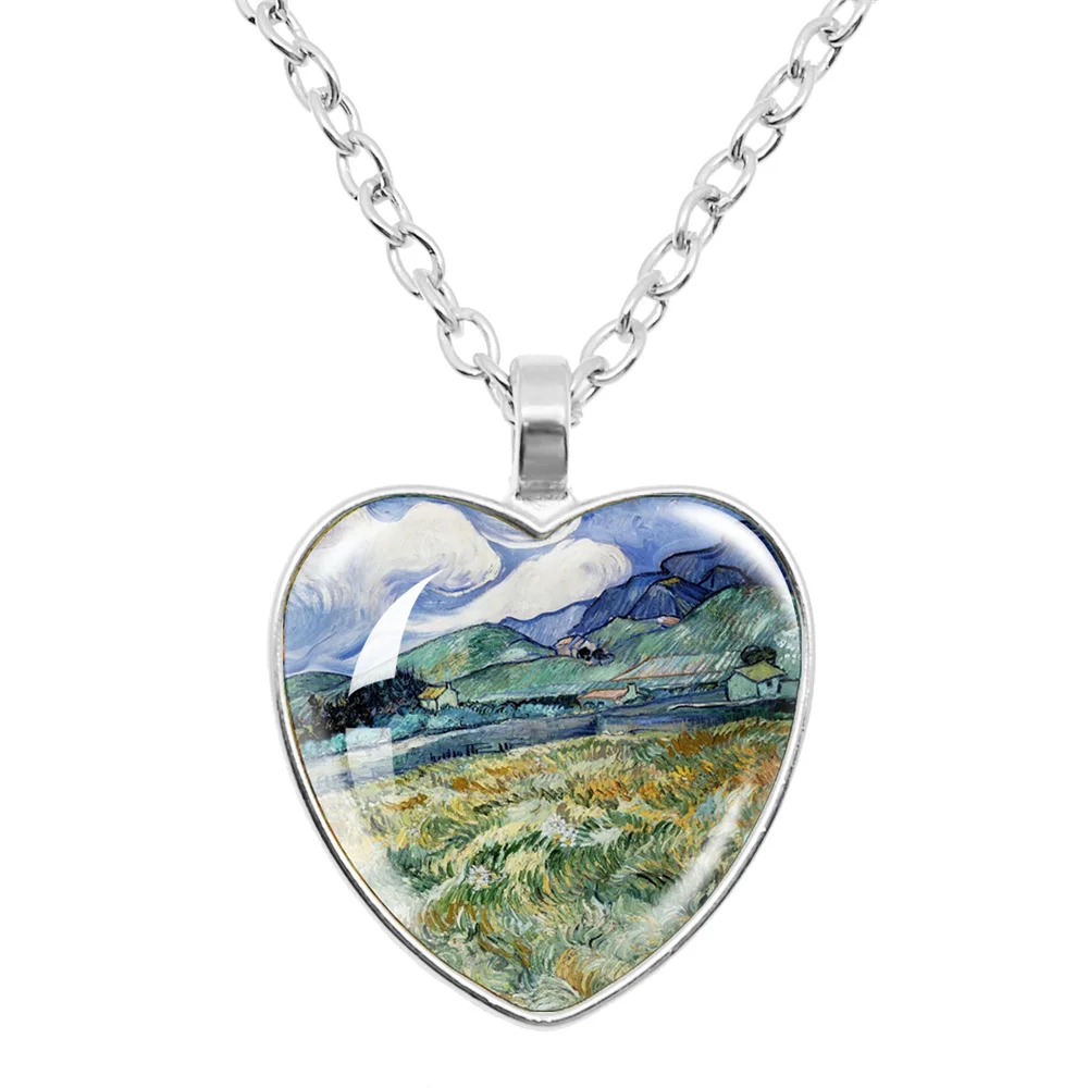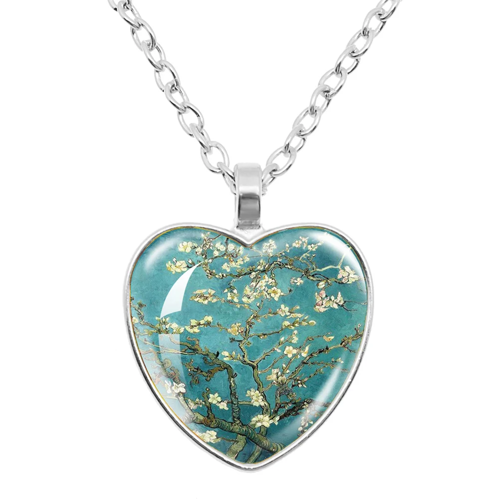 Fashion Van Gogh Art Starry Night Sunflower Necklace Glass Cabochon Painting Heart Pendant Printed Photo Necklaces