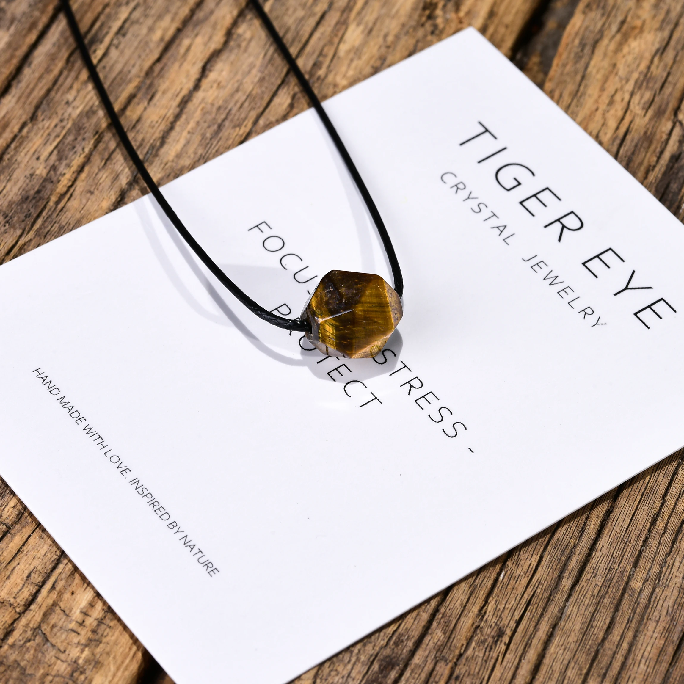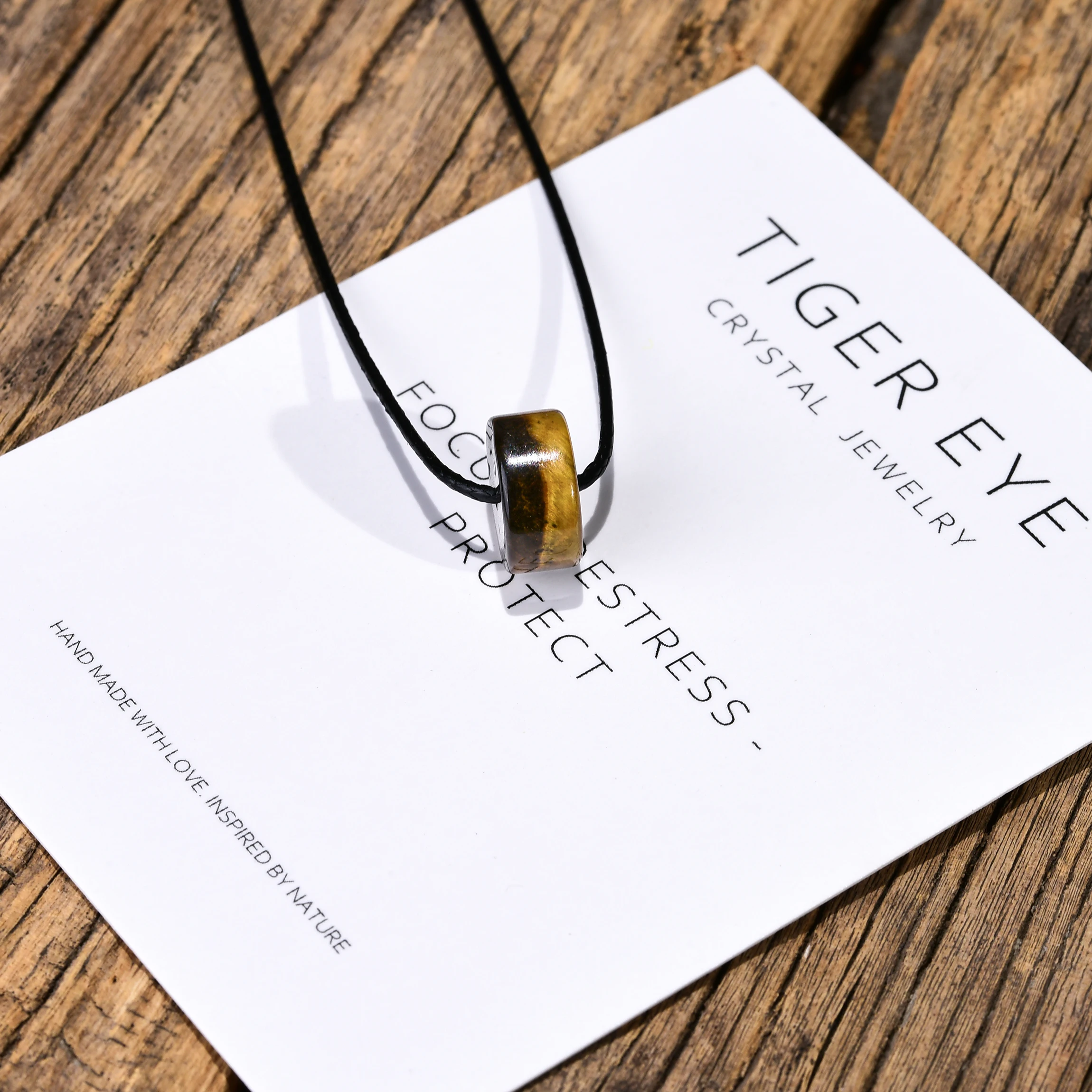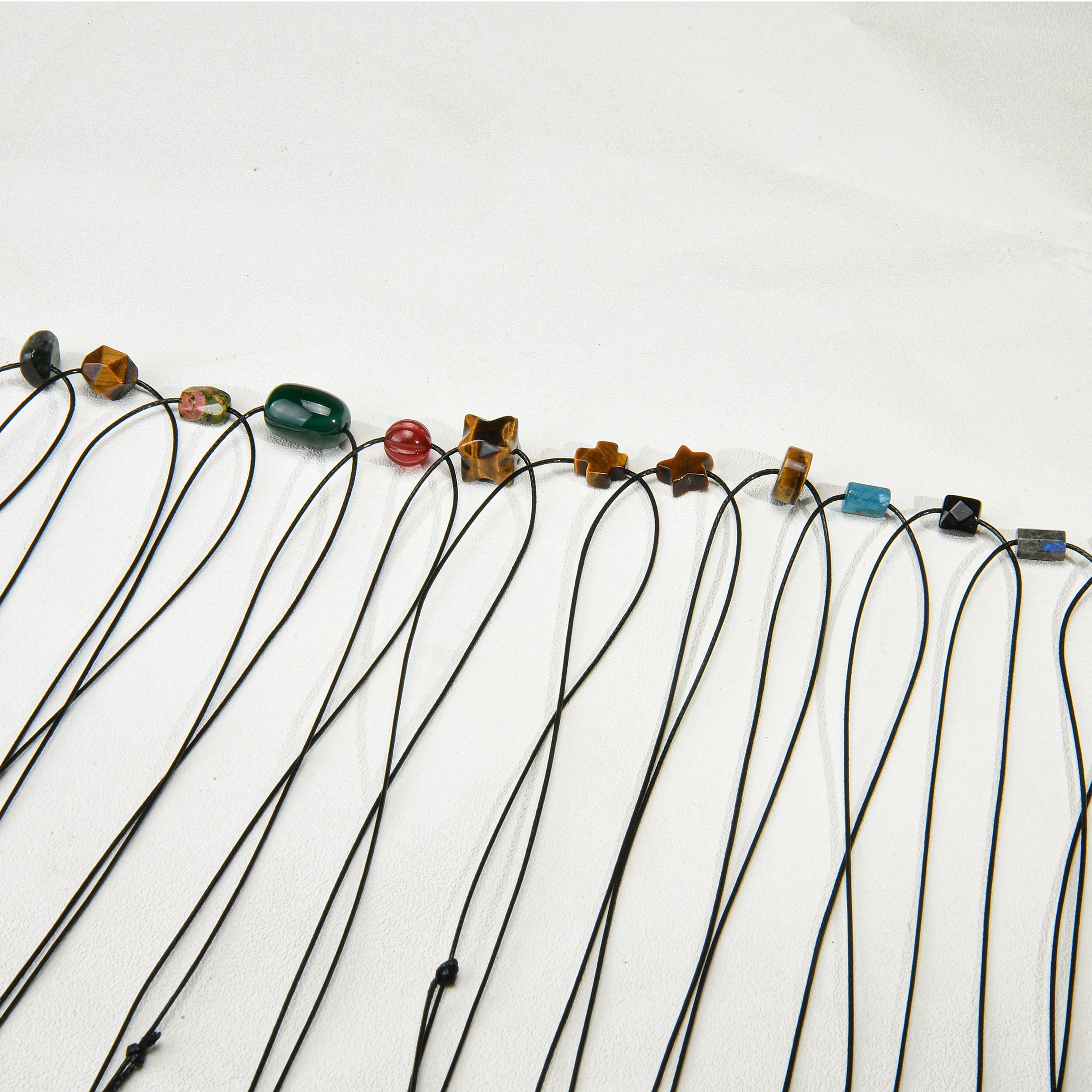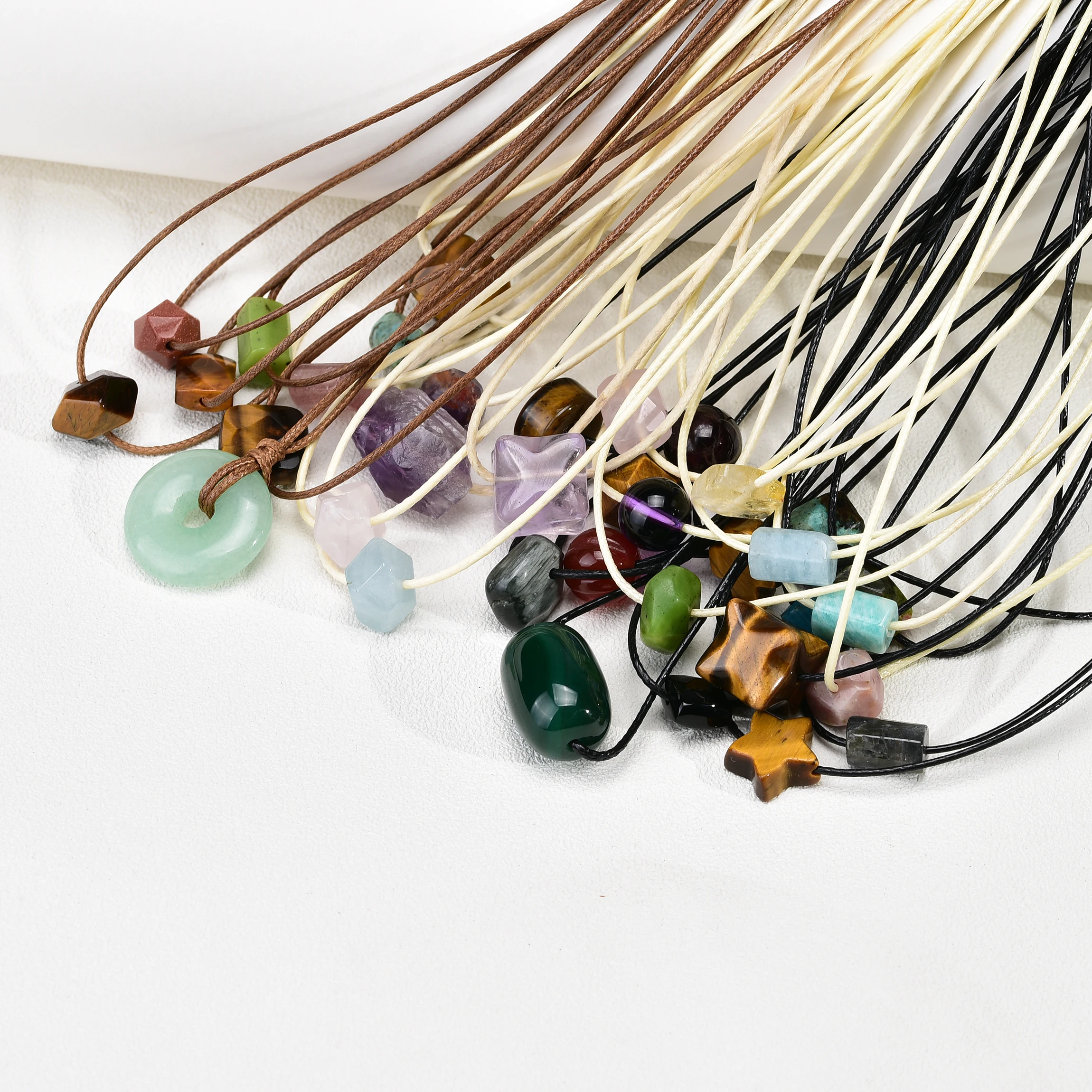 Natural Gemstone Pendant Necklace for Women Jade Amethyst Tiger eye Stone Crystal Wax Cord Adjustable Choker Necklaces