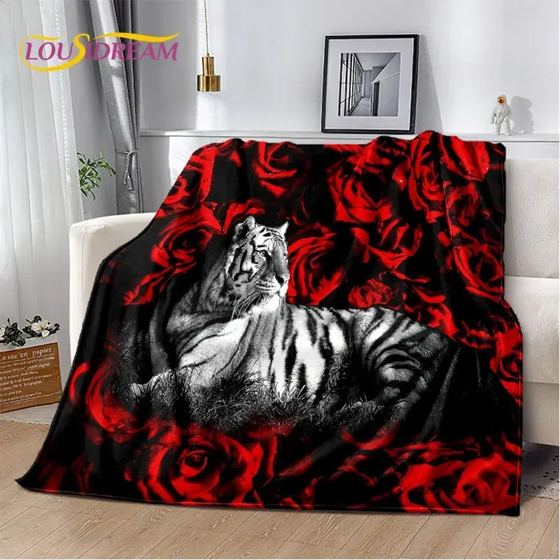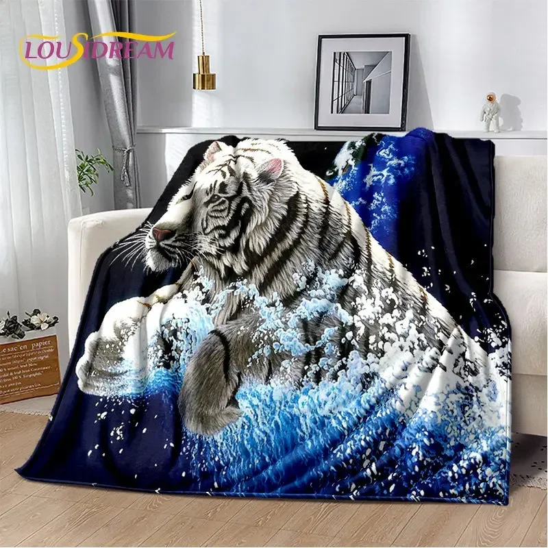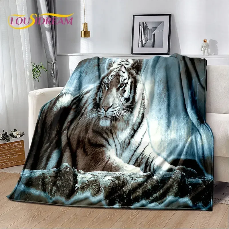 3D Cartoon Tiger Wolf Lion Leopard Animal Plush Blanket,Flannel Blanket Throw Blanket for Living Room Bedroom Bed Sofa Picnic