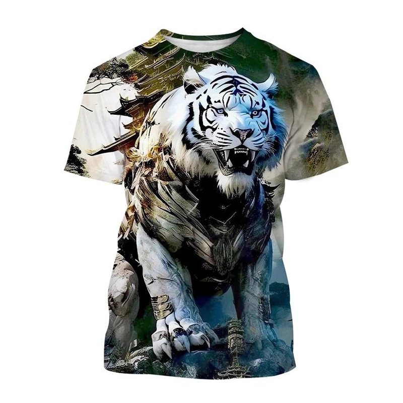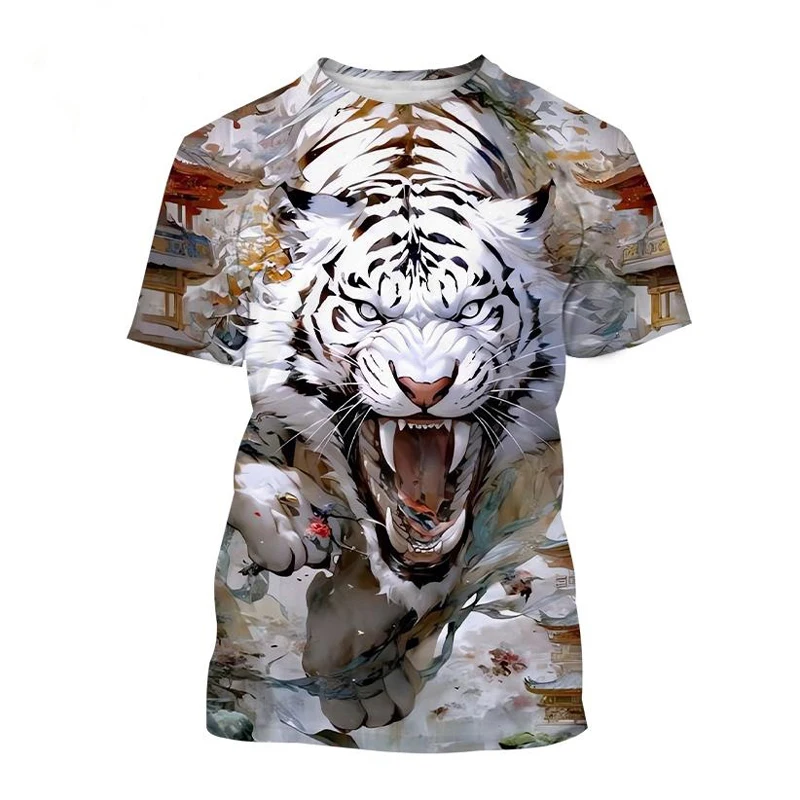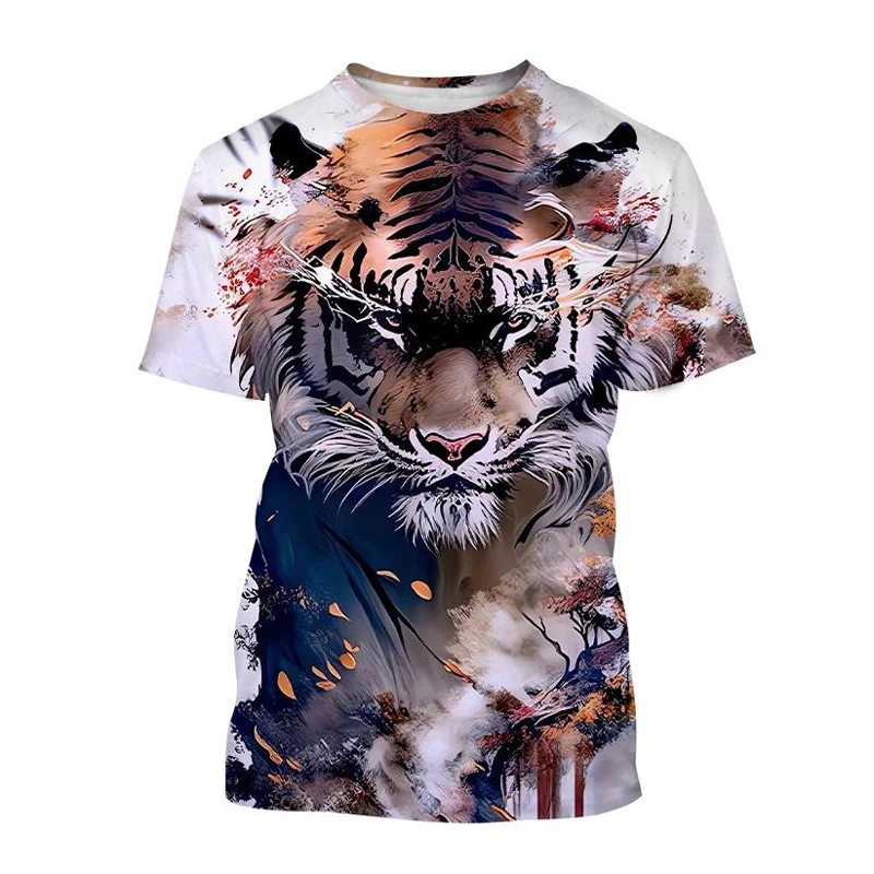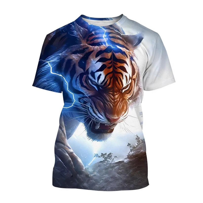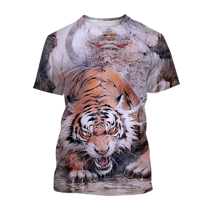 Summer Fashion Cool Animal Tiger graphic t shirts For Men Personality Trend Casual Street Style Printed Round Neck Short Sleeve