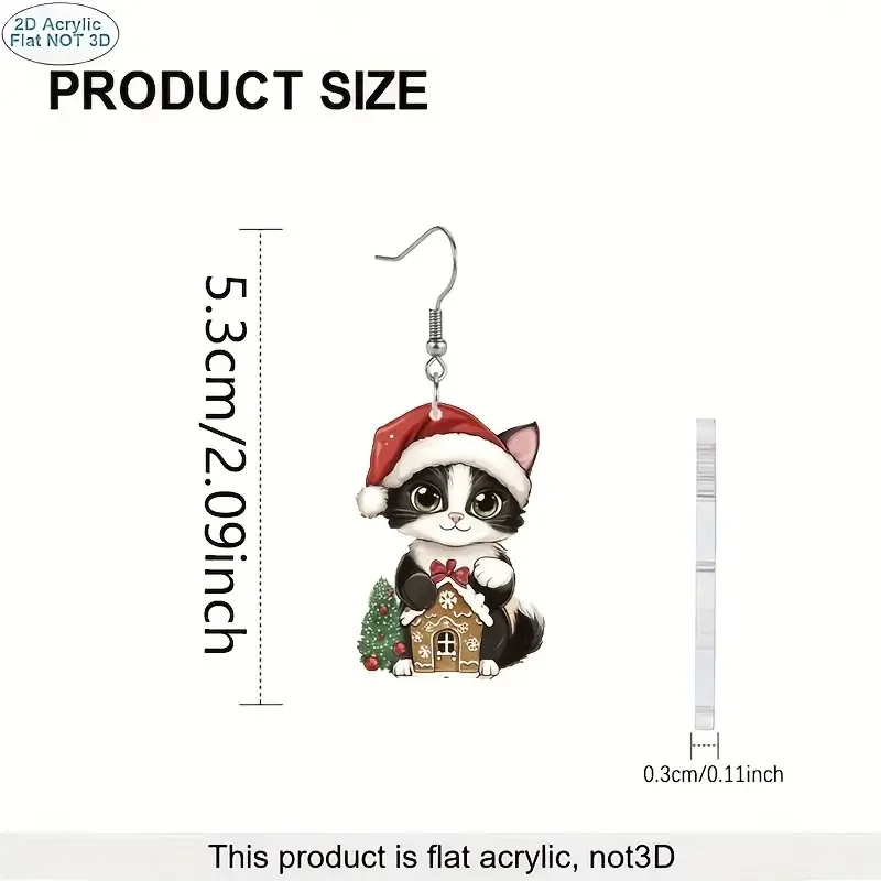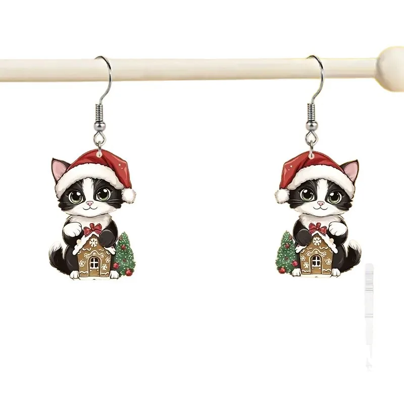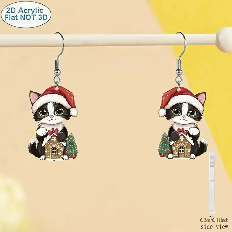 1 pair of acrylic cat earrings wearing a Christmas hat, suitable for ladies Christmas holiday party Christmas gifts