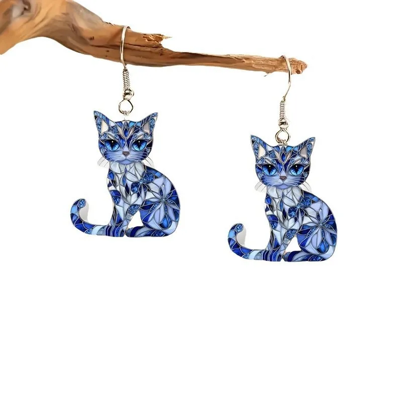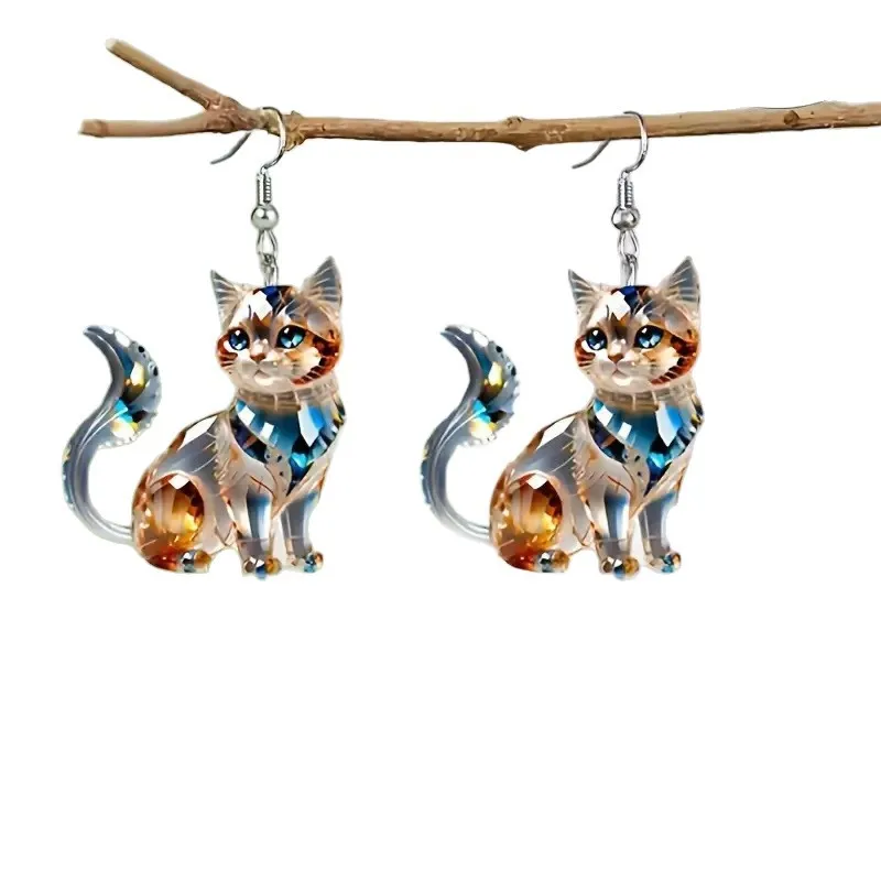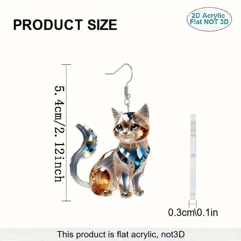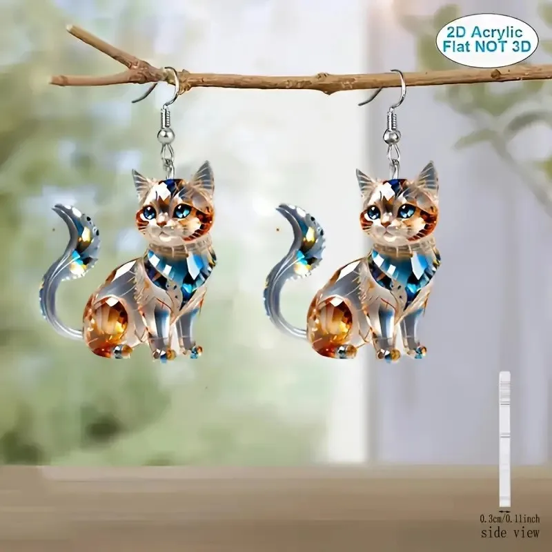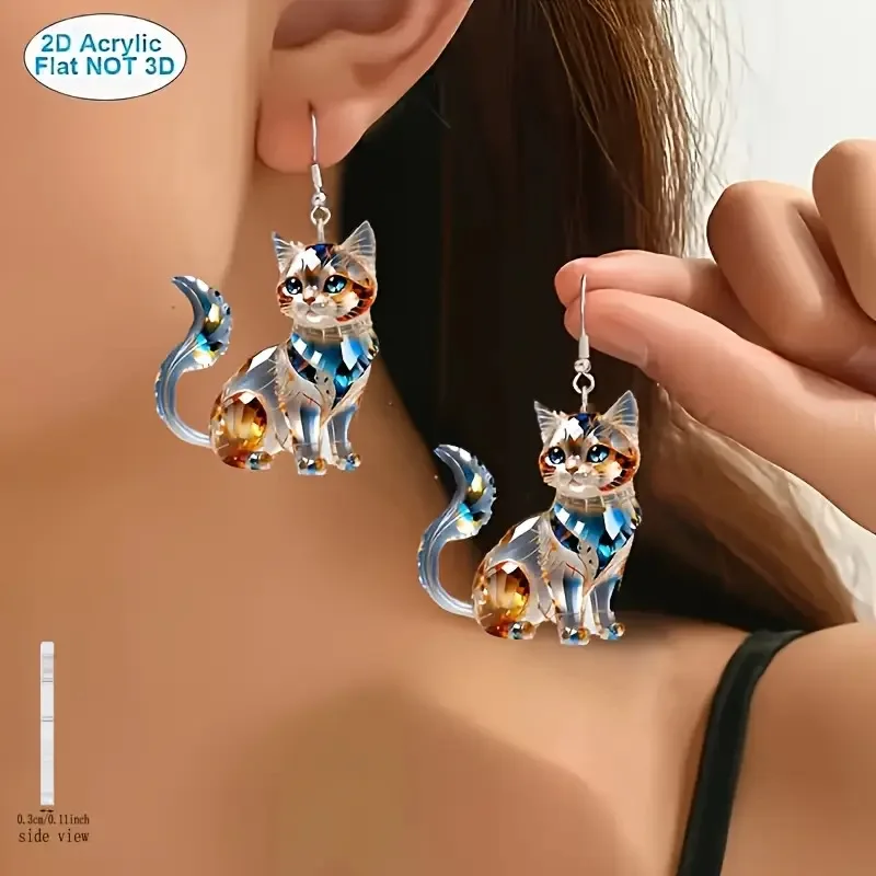 1 pair of flat 2D acrylic Persian cat earrings, fashionable design ladies earrings, suitable for daily parties and four seasons