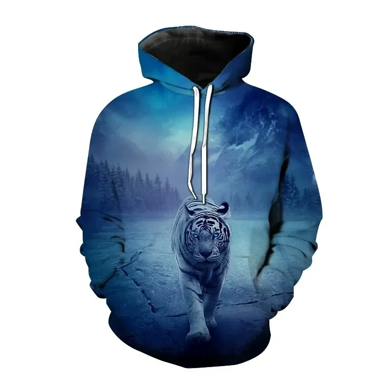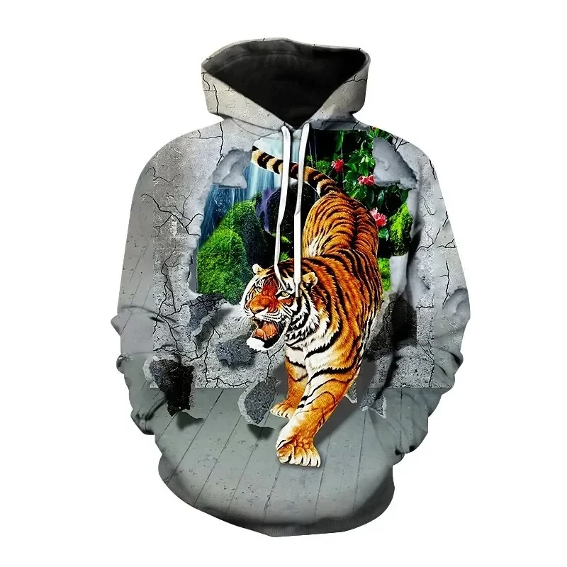 2024 New Fashionable Casual Hoodie Pullover Long Sleeve 3D Animal Tiger Pattern Men's Top Sportswear