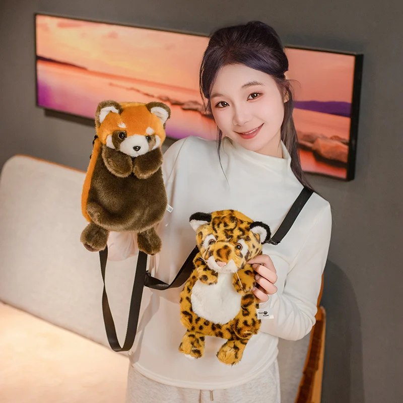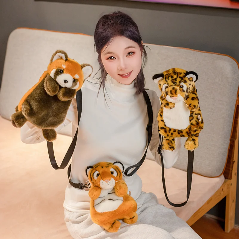 28cm Soft Cute Plush Bag Animal Style Red Panda Leopard Tiger Koala Plushies Phone Coin Purse Kawaii Hangout Bags Girl Gift