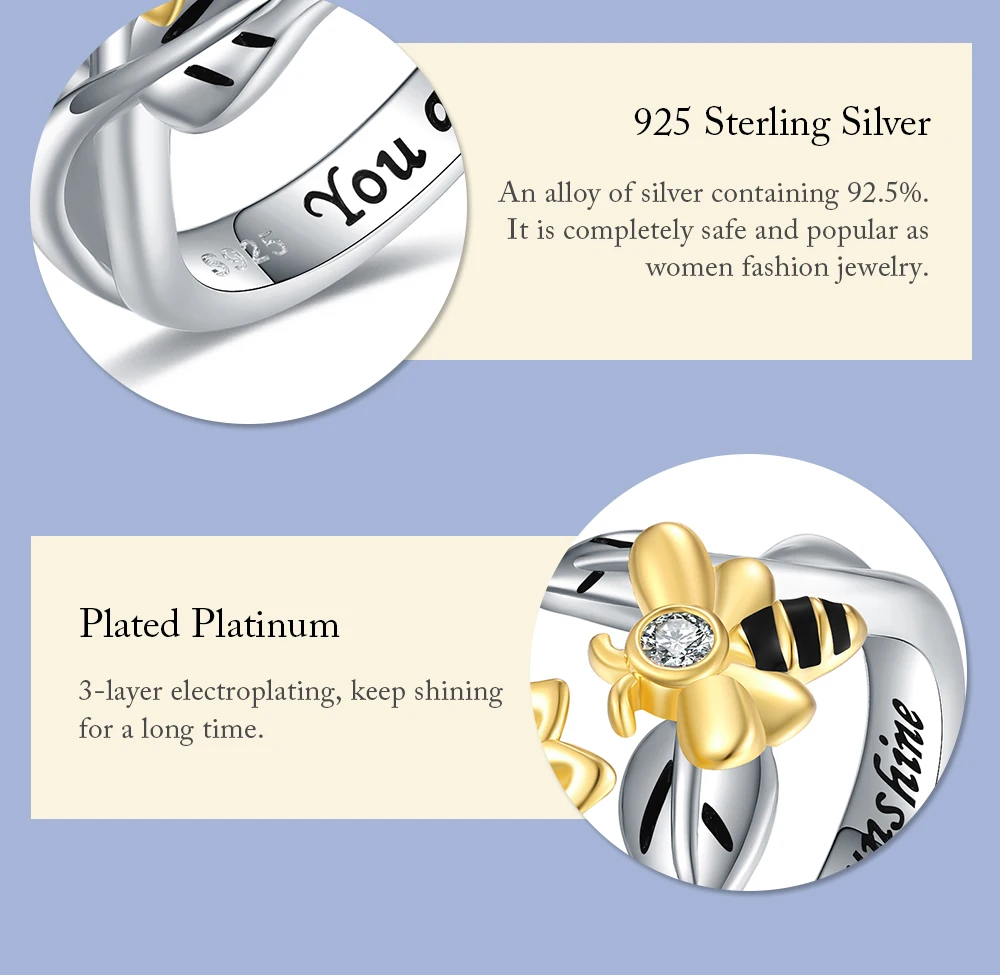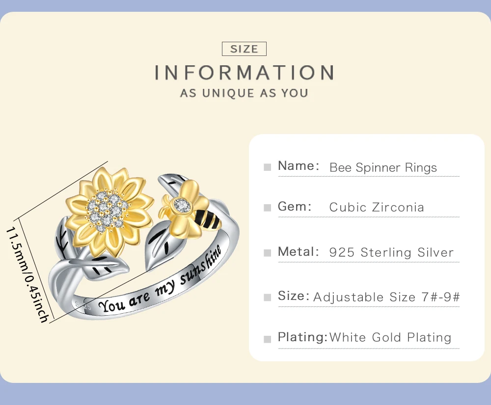 ❣MATERIAL❣ 100% 925 Sterling Silver, Lead-Free & Nickel-Free, Hypoallergenic and Safety for sensitive skins, Silver Spinner Sunflower Bee Rings Featured AAA grade quality, wearing sterling silver prevent allergy,long time wearing keeps you a good health.