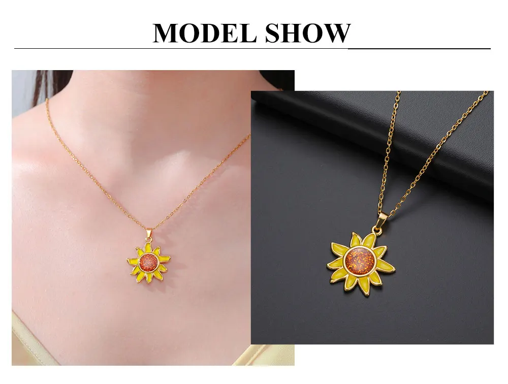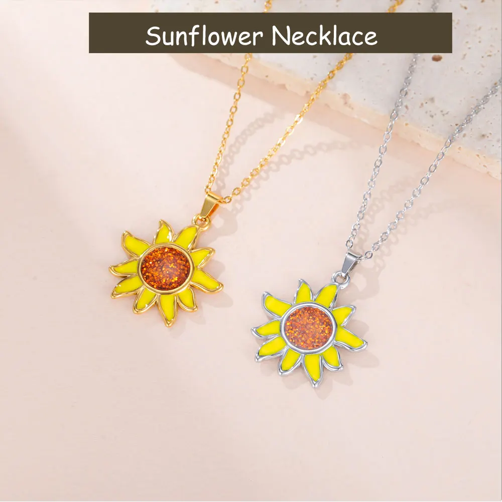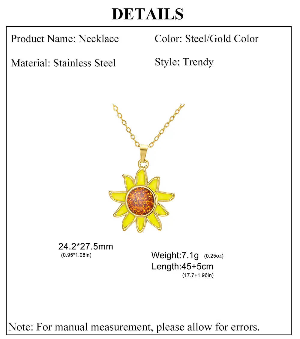 Cazador Stainless Steel Yellow Color Sunflower Pendant Necklace for Women Girls 2025 Trend Jewelry Neck Chain Birthday Gift New