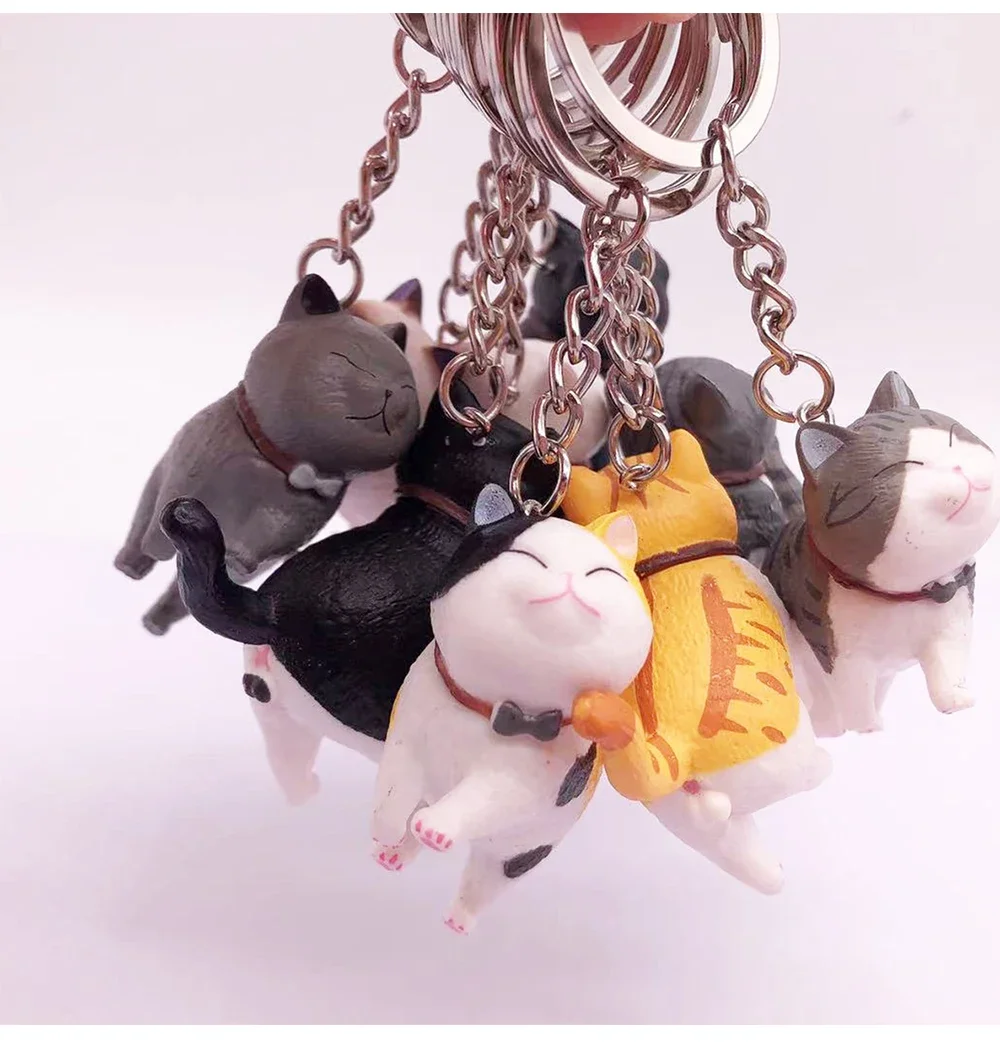 Cute Cartoon Japanese Cat Keyring Round Rolling Simple Cat Cat Pendant for Women Car Keyring Purse Bag Accessories Gifts