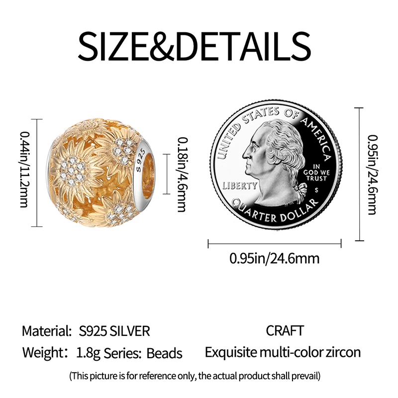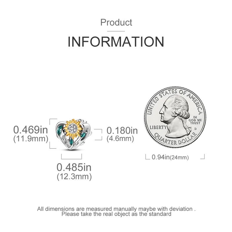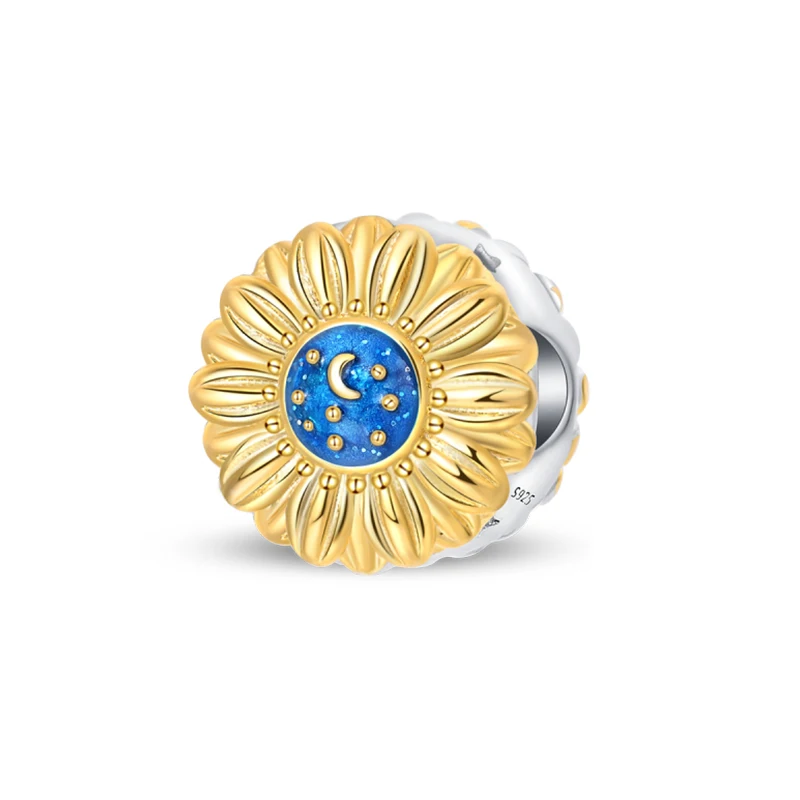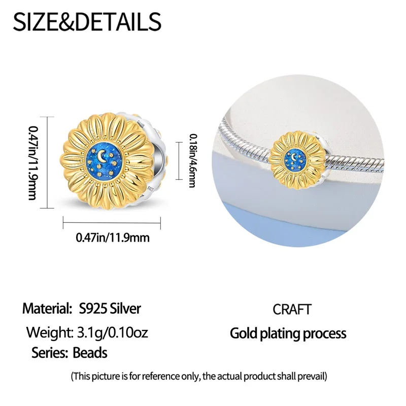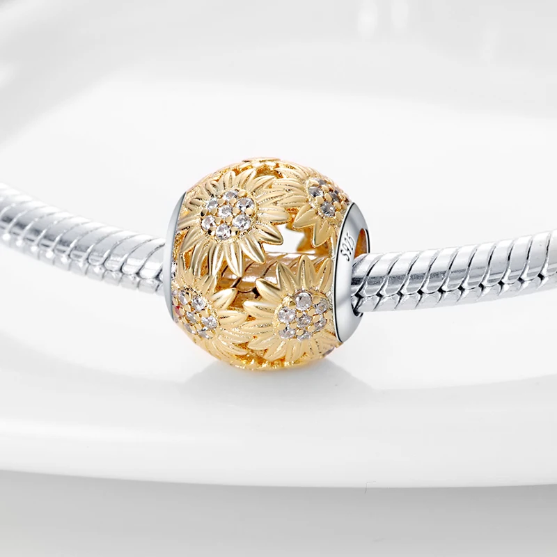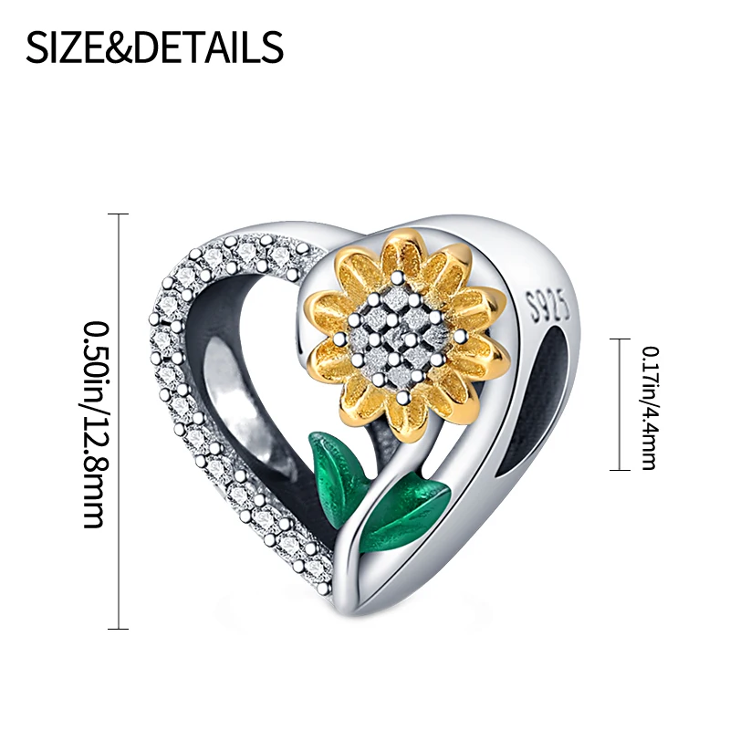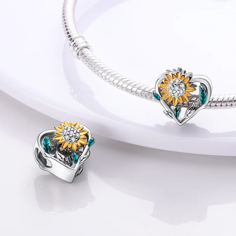 Fashion 925 Sterling Silver Heart-Shaped Golden Sunflower Charms Beads Fit Qikaola 925 Original Bracelet DIY Anniversary Jewelry