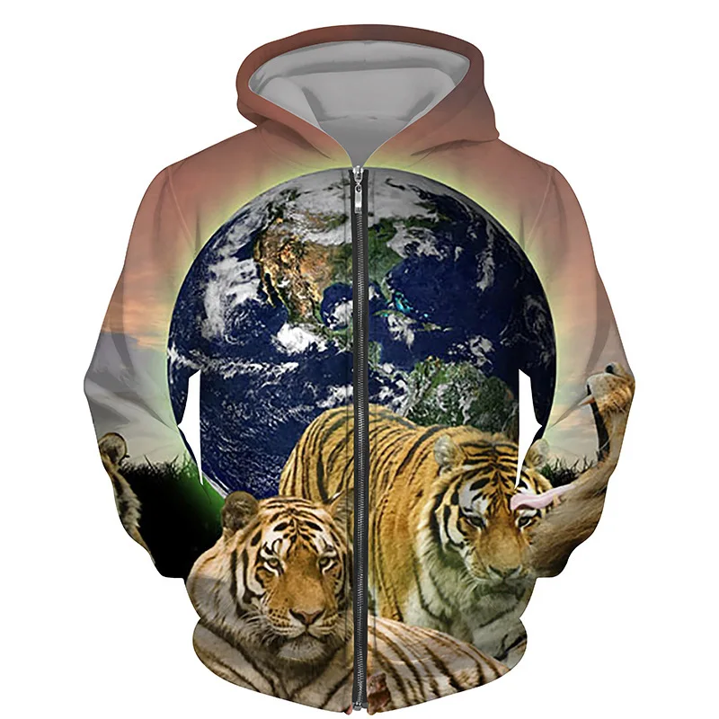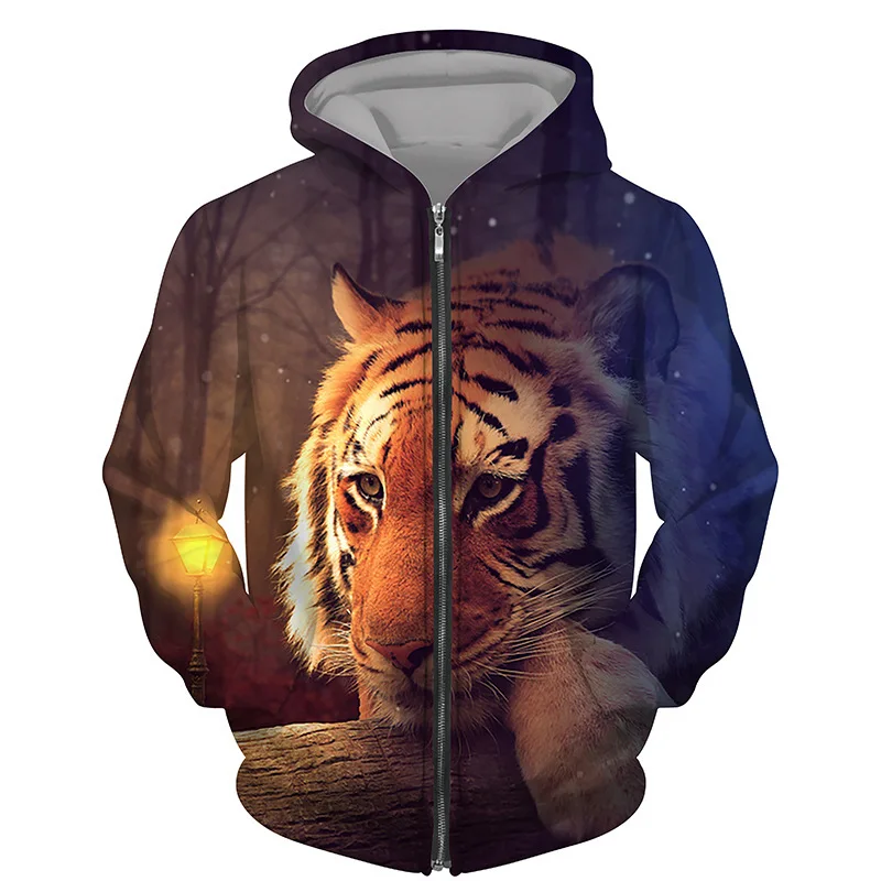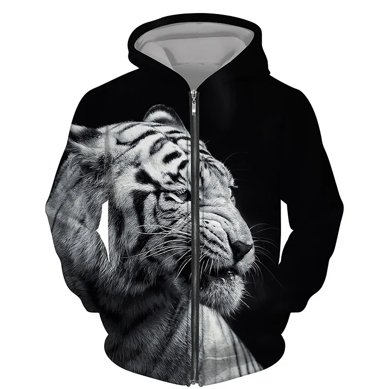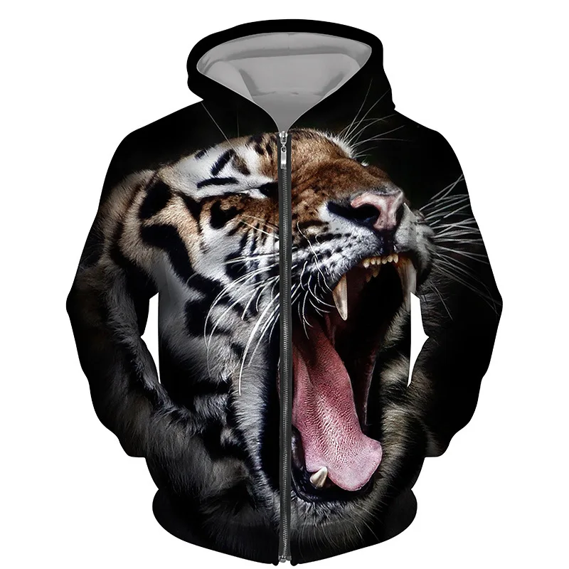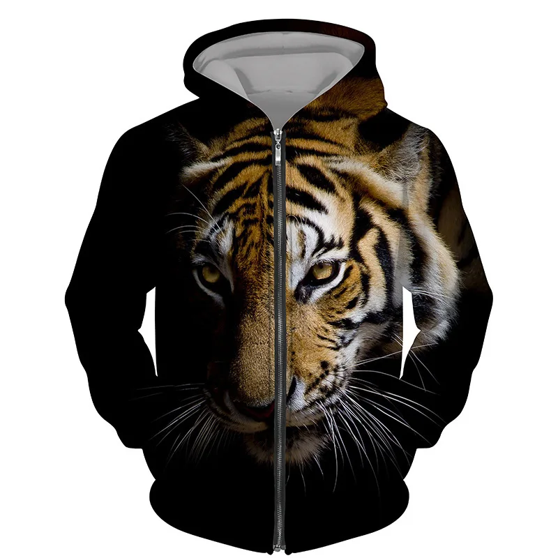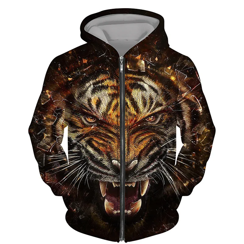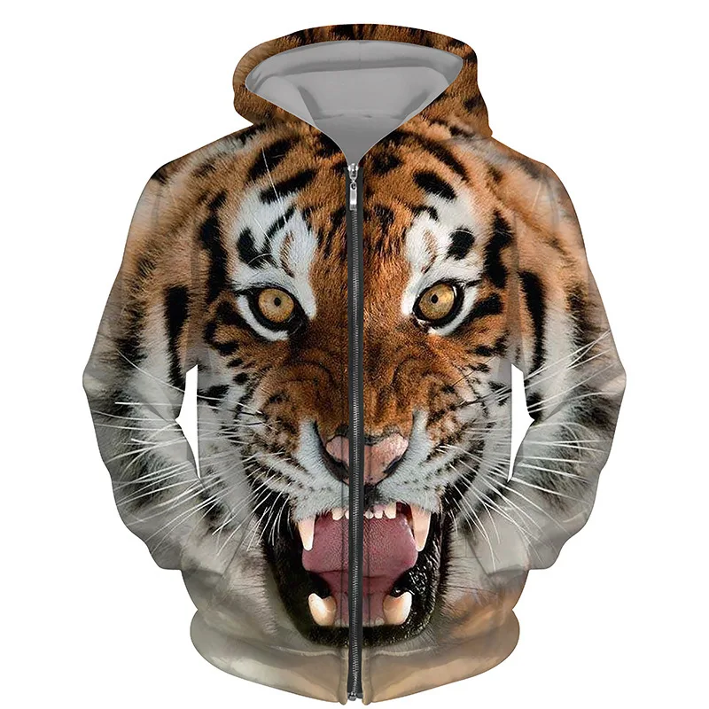 Hoodies 3d Printed Animals Tigers Zipper Sweatshirts Men Women Hooded Oversized Hoodie Kids Zip Up Sweatshirts Tracksuits Coat
