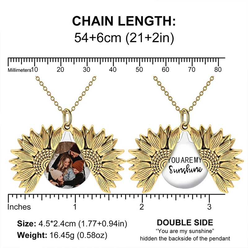 Personalized Photo Sunflower Locket Necklace for Women Customized Picture/Text Memorial Locket Necklace Sunshine Jewelry Gifts