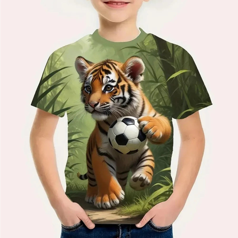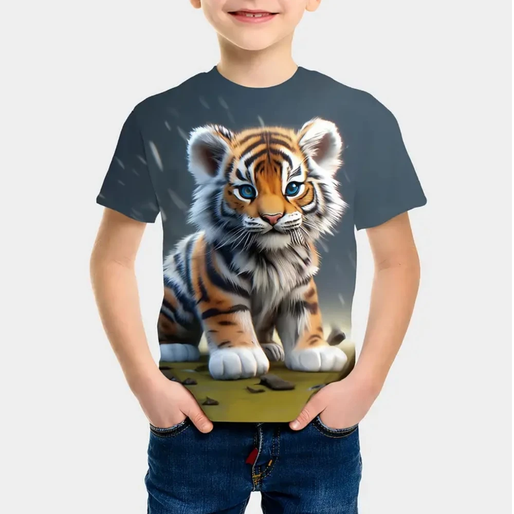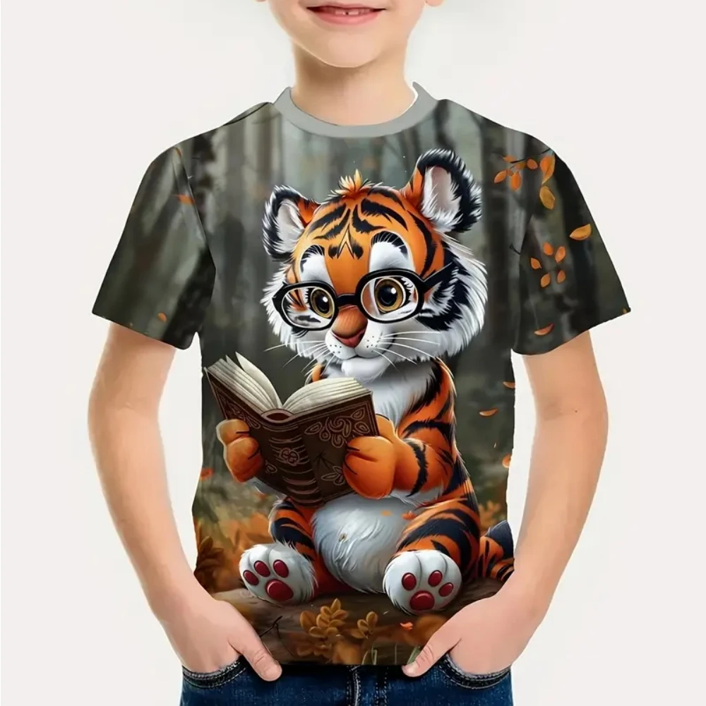 T-Shirts for Boys Cute Cartoon Tiger 3D Print Short Sleeves Graphic T Shirts Fun Children's Clothing Sporting Style Boys Clothes